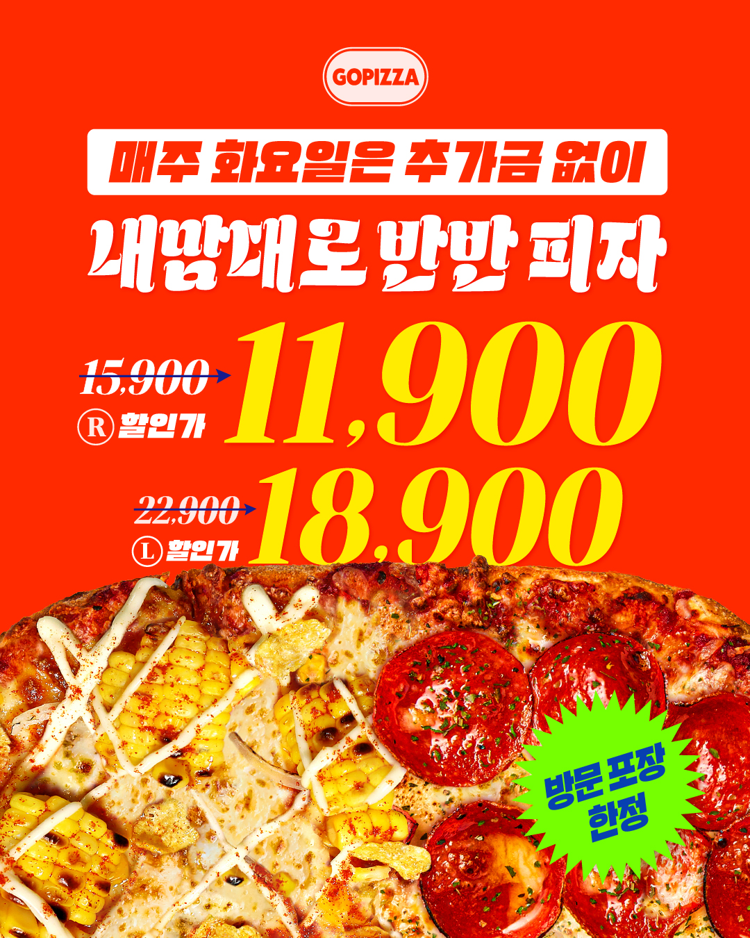 매주 화요일 '내맘대로 반반' 피자 선택 추가금 최대 3,000원 할인